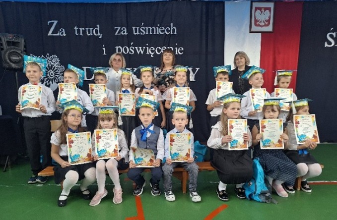 Na zakończenie Pierwszoklasiści otrzymali pamiątkowe dyplomy, upominki, a także plecaki od Wójta Gminy Terespol.