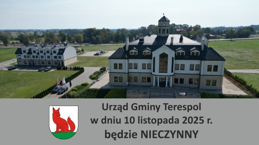Zarządzeniem Nr 62/25 Wójta Gminy Terespol z dnia 17 października 2025 r. wyznacza się dzień 10 listopada 2025 r. dniem wolnym od pracy w zamian za dzień 1 listopada 2025 r.