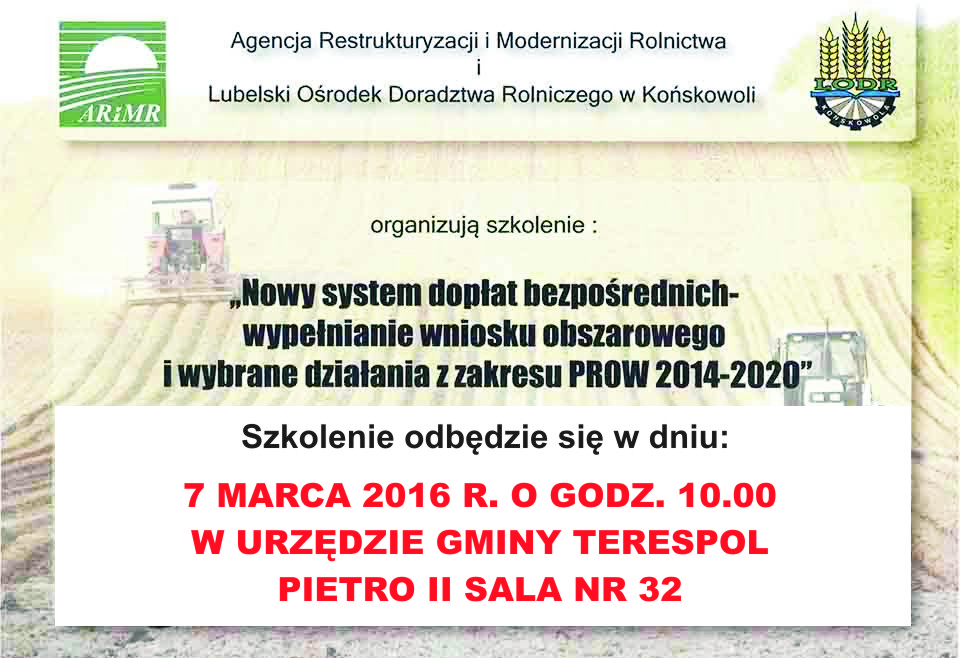 SZKOLENIA Z NOWEGO SYSTEMU DOPŁAT DLA ROLNIKóW